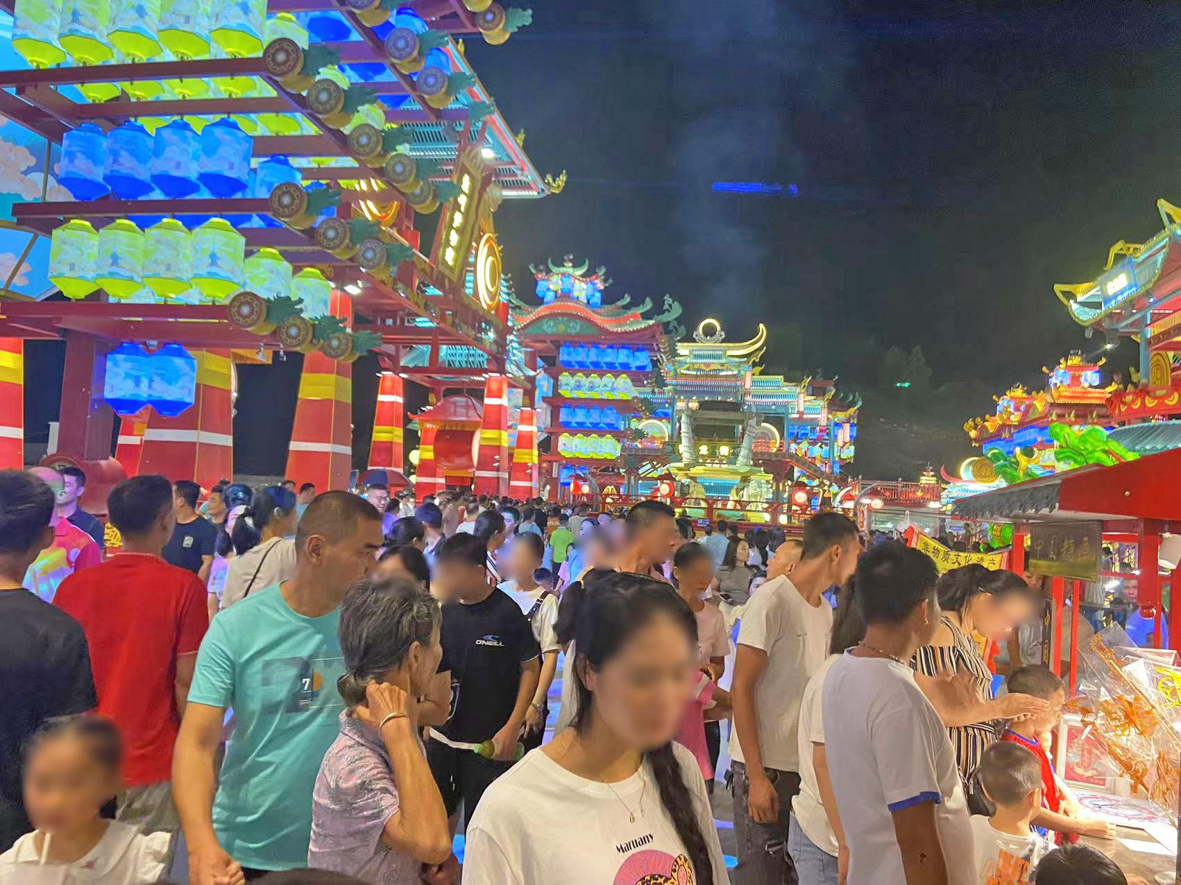 例如,位于广西壮族自治区来宾市象州县的象州梦幻夜,占地面积3.2万平方米,由象州县汇通国有资产运营管理有限公司与锦上添花文旅集团联合打造。其以国潮·科技·展演·多元·梦幻为设计理念,打造出全国首个国风科技文旅街区。